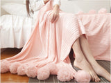 Super Cozy Feel: Surround yourself with Pompoms Blankets while watching TV series with a mug of hot chocolate on couch, especially on chilly nights. A perfect companion while having a comfy nap in your work with our super cozy blanket.