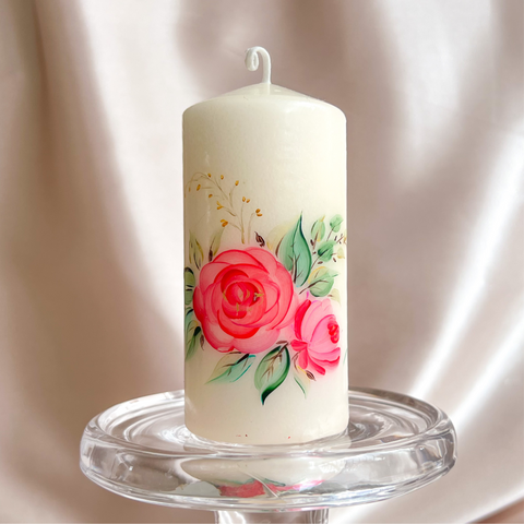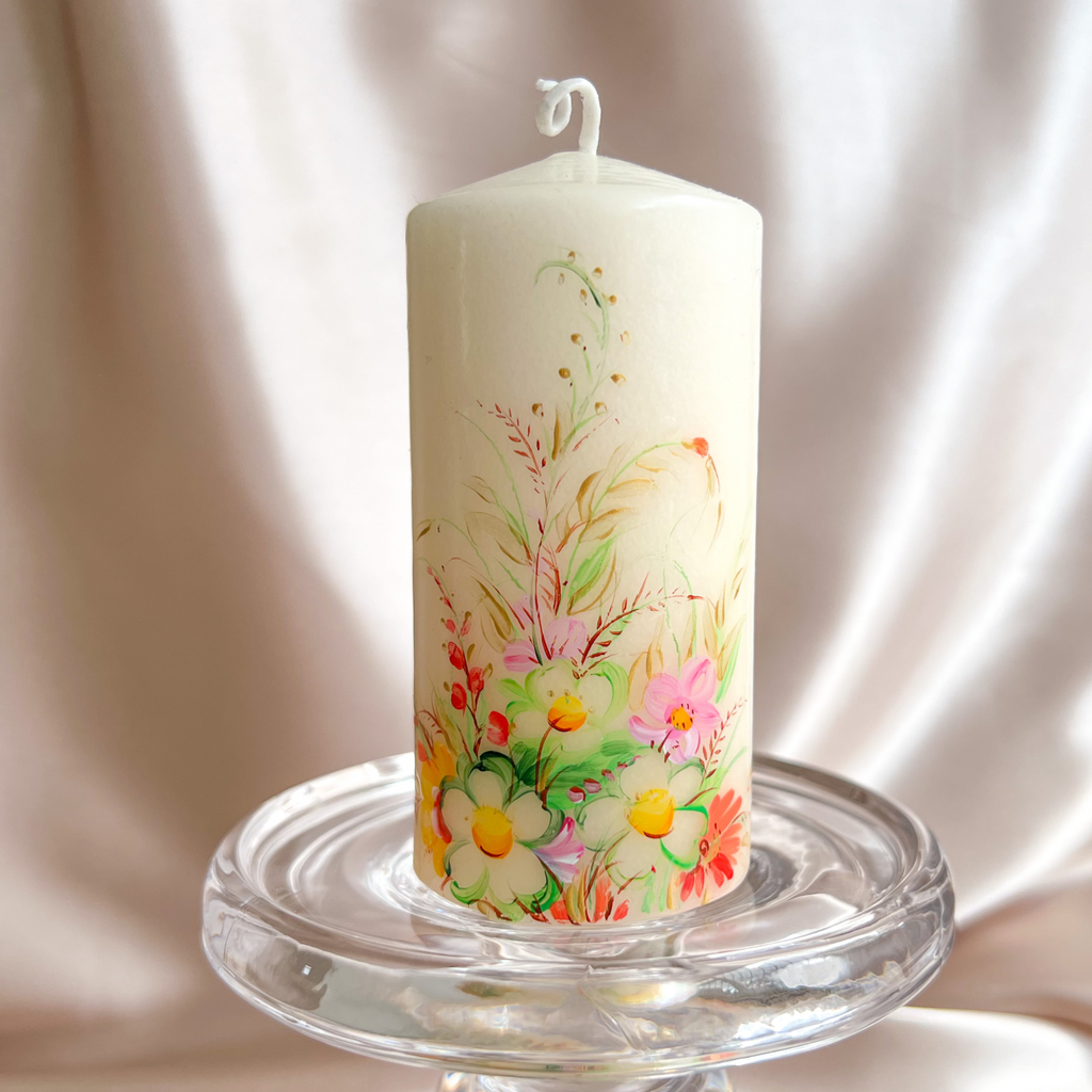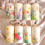Illuminate your special day with the timeless allure of flowers with our hand-painted floral pillar candles today.