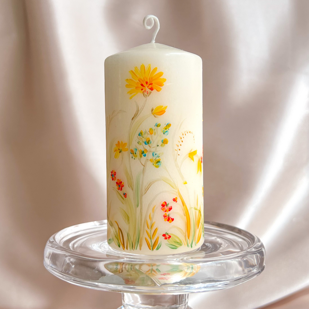Available in 8 enchanting floral styles, our hand-painted pillar candles capture the timeless elegance and charm of blooming flowers. Whether you prefer delicate roses, vibrant sunflowers, or graceful lilies, each floral design is carefully hand-painted to perfection.