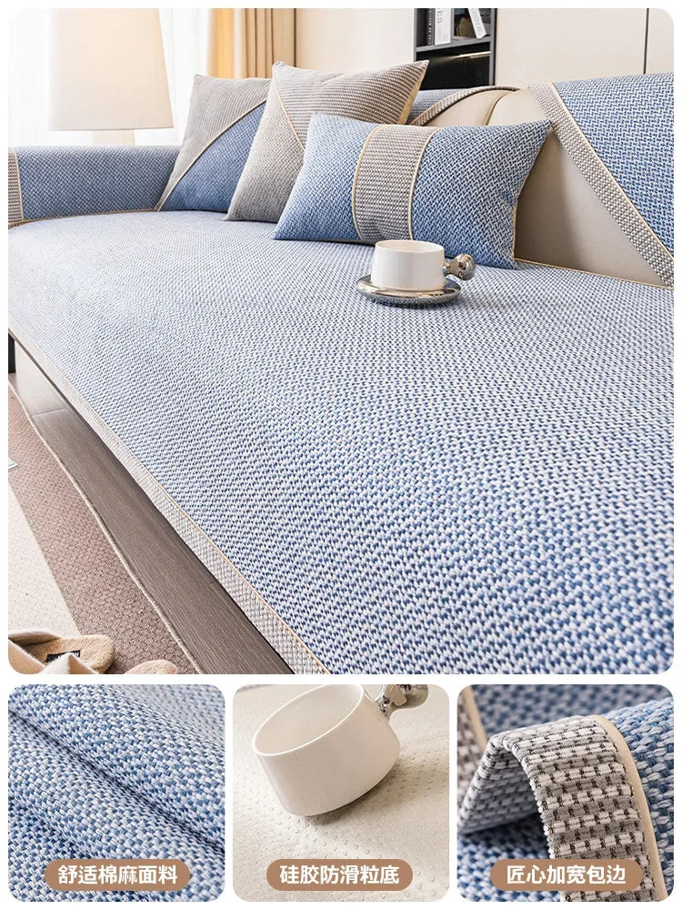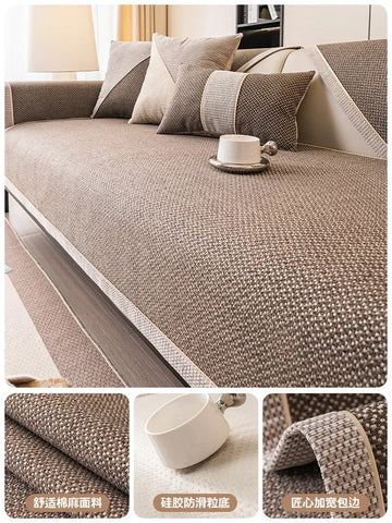 Enhance the comfort and style of your living space with our Sofa Cushion Covers. Crafted from a blend of soft cotton and linen, these cushion covers provide a comfortable and elegant touch to your sofa, making your furniture look and feel like new. The non-slip silicone bottom ensures the covers stay in place, even during extended use, and the washable woven fabric makes maintenance easy. These universal covers are available in multiple colors and sizes to suit your sofa perfectly.