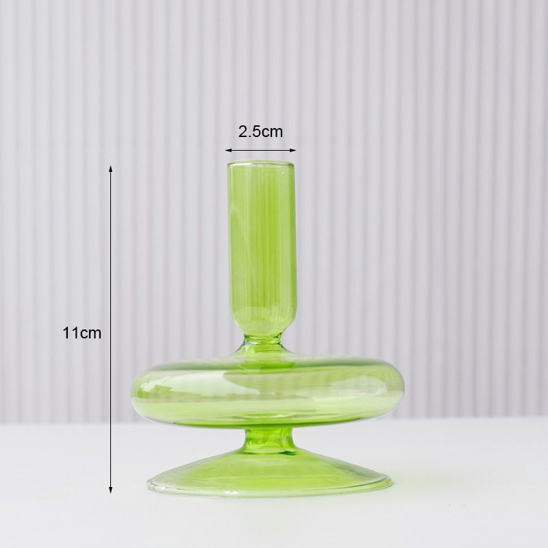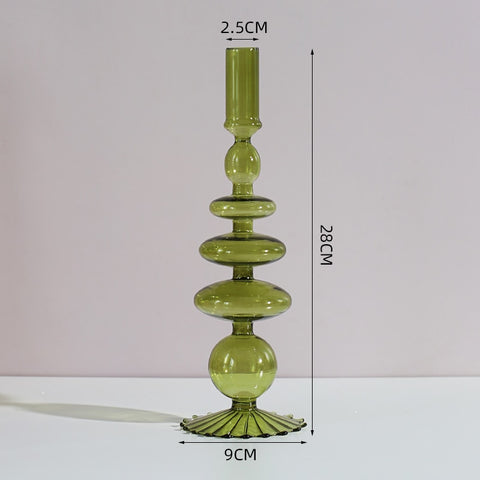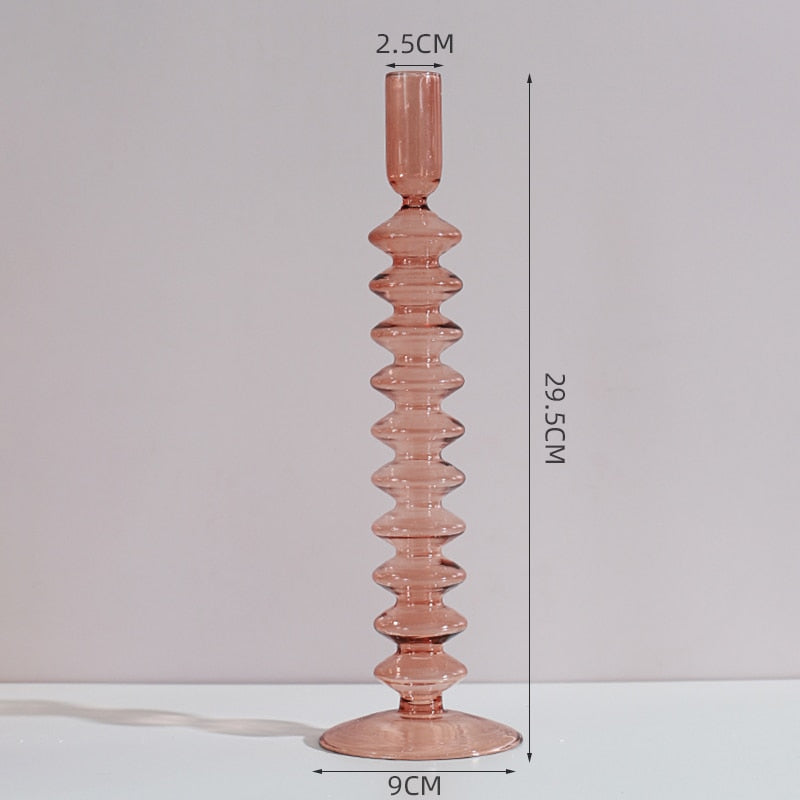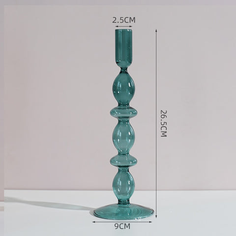 Beautiful and elegant bubble candle holders that are crafted from vibrantly tinted glass to form a decorative silhouette.