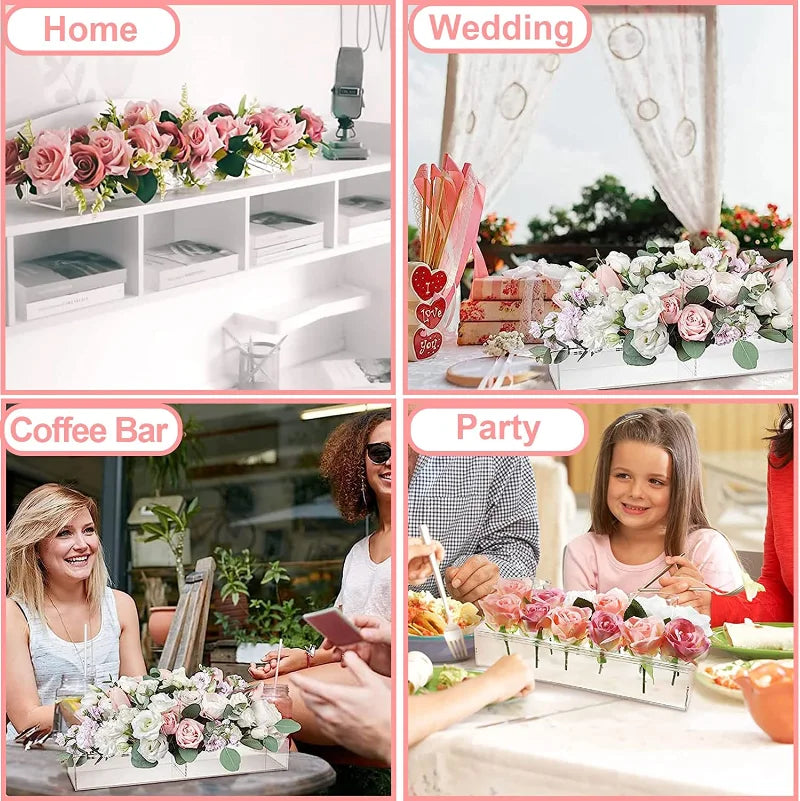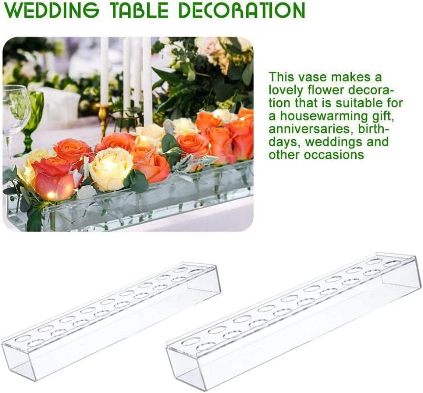 Elevate your décor with this Wedding Table Rectangular Flower Vase designed to be the perfect floral centerpiece for weddings, dinner tables, and home décor. Crafted from high-quality, transparent acrylic, this sleek, modern vase adds a touch of elegance to any setting.