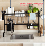 • Large Capacity: Compact 2-layer design, it has a lot of space for fixing plates, bowls, etc. Side frames for storing spoons, chopsticks, kitchen knives, chopping boards and other items.
