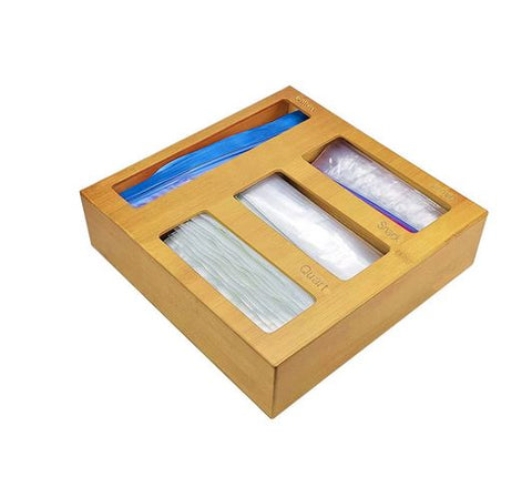 Bamboo Kitchen Drawer Organizer For Ziplock Bags