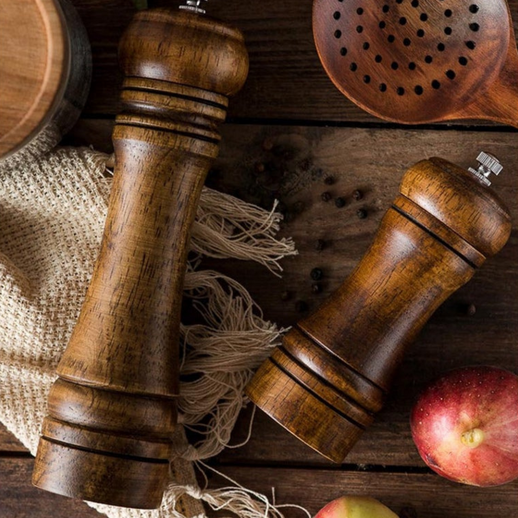• EASY TO USE: Oak wood grinders can store salt, pepper and other spice