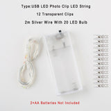 Type 1 : 12pcs Clear Photo Clip and 2m Silver Wire with 20 bulbs (Battery Operated Powered )