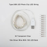 Type 3 : 50pcs Clear Photo Clip and 10m Silver Wire with 100 bulbs (USB LED String Fairy Light )