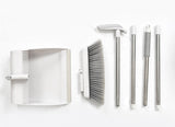 Once emptied, return the dustpan to its pivoted position, clip the handles of the dustpan and brush together and the full set is ready to be slotted into a narrow gap in your cleaning cupboard, with the dustpan standing up on end rather than with its base taking up lots of space on the floor.