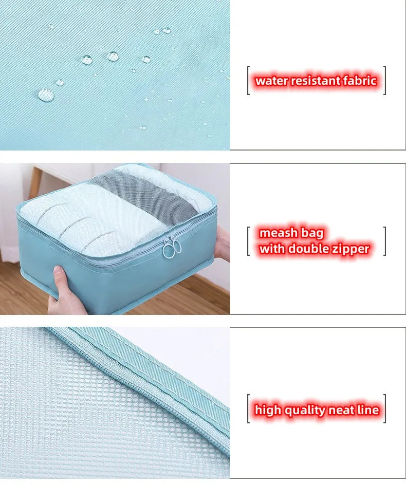 Luggage Organizer Set-your ultimate solution to travel organization hassles! Say goodbye to the chaos of packing and hello to stress-free journeys with our meticulously designed sets available in 6, 8, or 9-piece options, ensuring there's a perfect fit for every traveler's needs.
