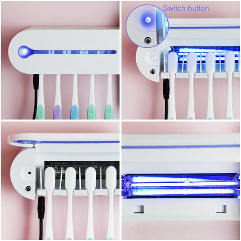 - Three-in-one function: including toothbrush holder, toothpaste dispenser, toothbrush UV sterilizer.