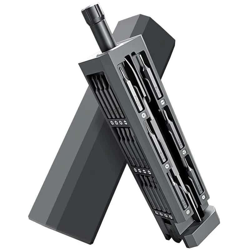 The magnetic screwdriver set features magnetic tips that keep bits securely in place while you work, reducing the chance of losing parts. This magnetic screwdriver kit is your essential toolset for precision repairs.