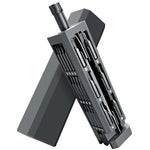 • Organized Magnetic Storage Box: This magnetic screwdriver set comes with a sleek, aluminum alloy storage box. The press-button design allows you to easily access all the bits, which are organized neatly in their compartments for convenience and quick access.