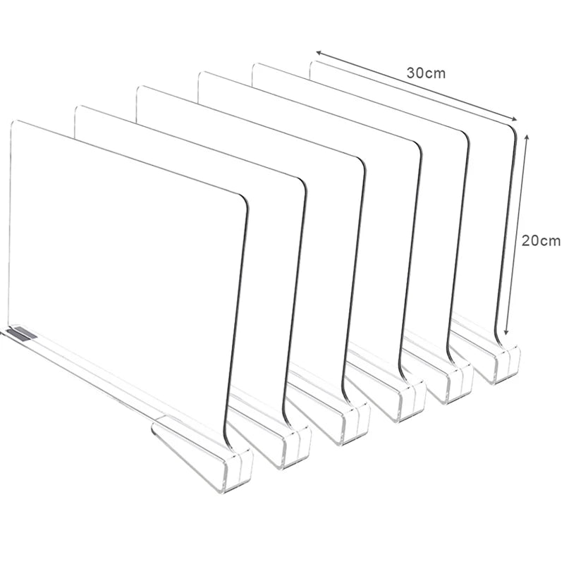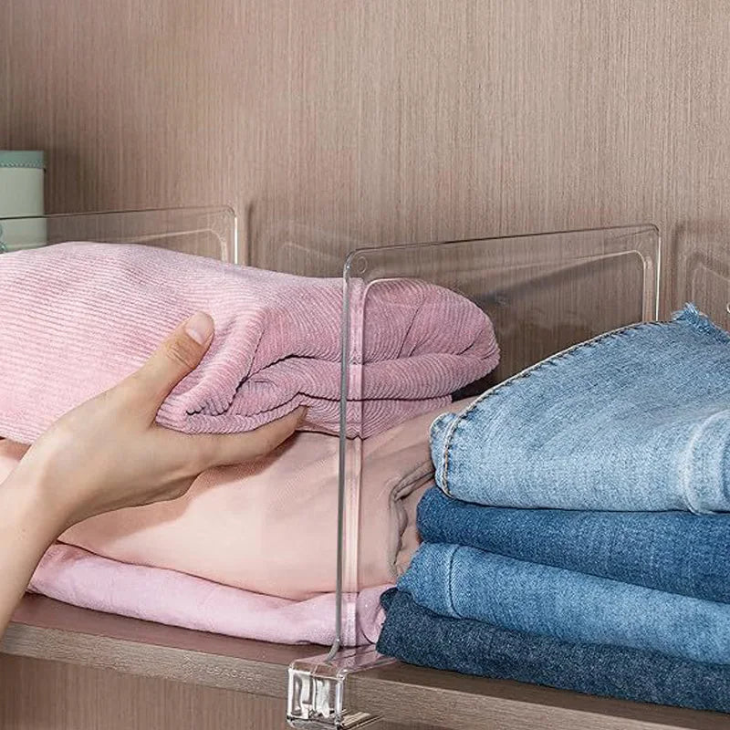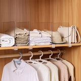 Adjustable Shelf Dividers: Designed to slide and adjust, these dividers fit a variety of shelf sizes, allowing you to customize storage zones within your wardrobe. Whether it's t-shirts, jeans, or handbags, you can easily create personalized sections for all your items without tools or permanent fixtures.