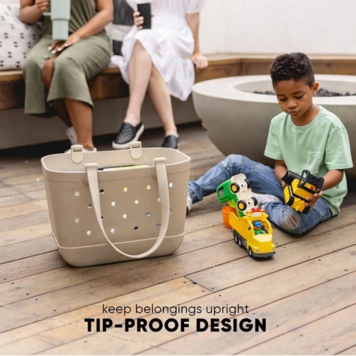 The Beach Rubber Tote with Zipper keeps your essentials safe and dry. Built from waterproof EVA material, it handles sand, water, and everyday messes with ease. This lightweight tote bag is easy to carry and wipe clean after a day out. It holds towels, snacks, clothes, and more without tipping or spilling. Whether you're at the beach, pool, boat, or on errands, this structured tote is made for everyday use in real conditions.