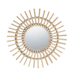 Featuring a sun shape frame,the unique design radiates from the centre round mirror. Sure to brighten up your space and the mood of anyone who passes by.