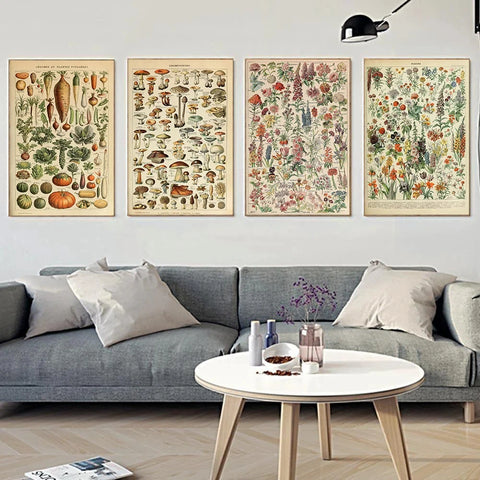 Vintage Botanical Art: Each poster presents detailed, vintage botanical illustrations of plants, mushrooms, flowers, and insects. These educational yet beautiful prints offer a touch of history and nature to your walls.