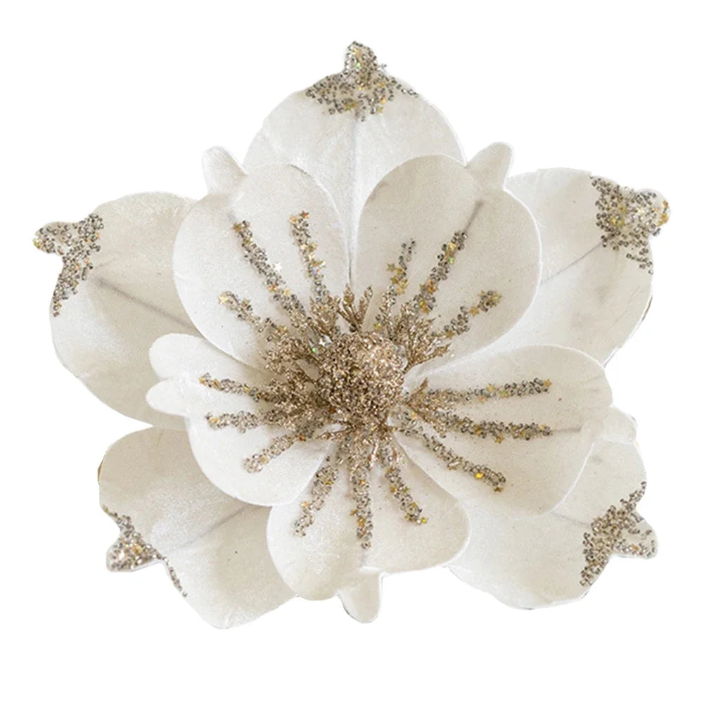 Add a festive sparkle to your holiday décor with these Glitter Christmas Poinsettia Flower Heads. Crafted from high-quality plastic, these artificial flowers are perfect for decorating Christmas trees, DIY wreaths, garlands, and holiday centerpieces.