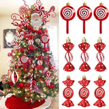 Festive and Cheerful Designs: This set of candy cane Christmas tree ornaments features colorful lollipops, candy sticks, and hanging balls that capture the joyful spirit of the holiday season.