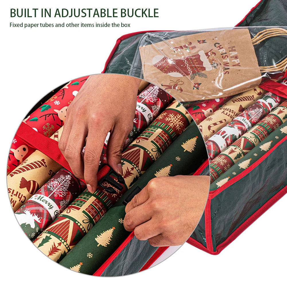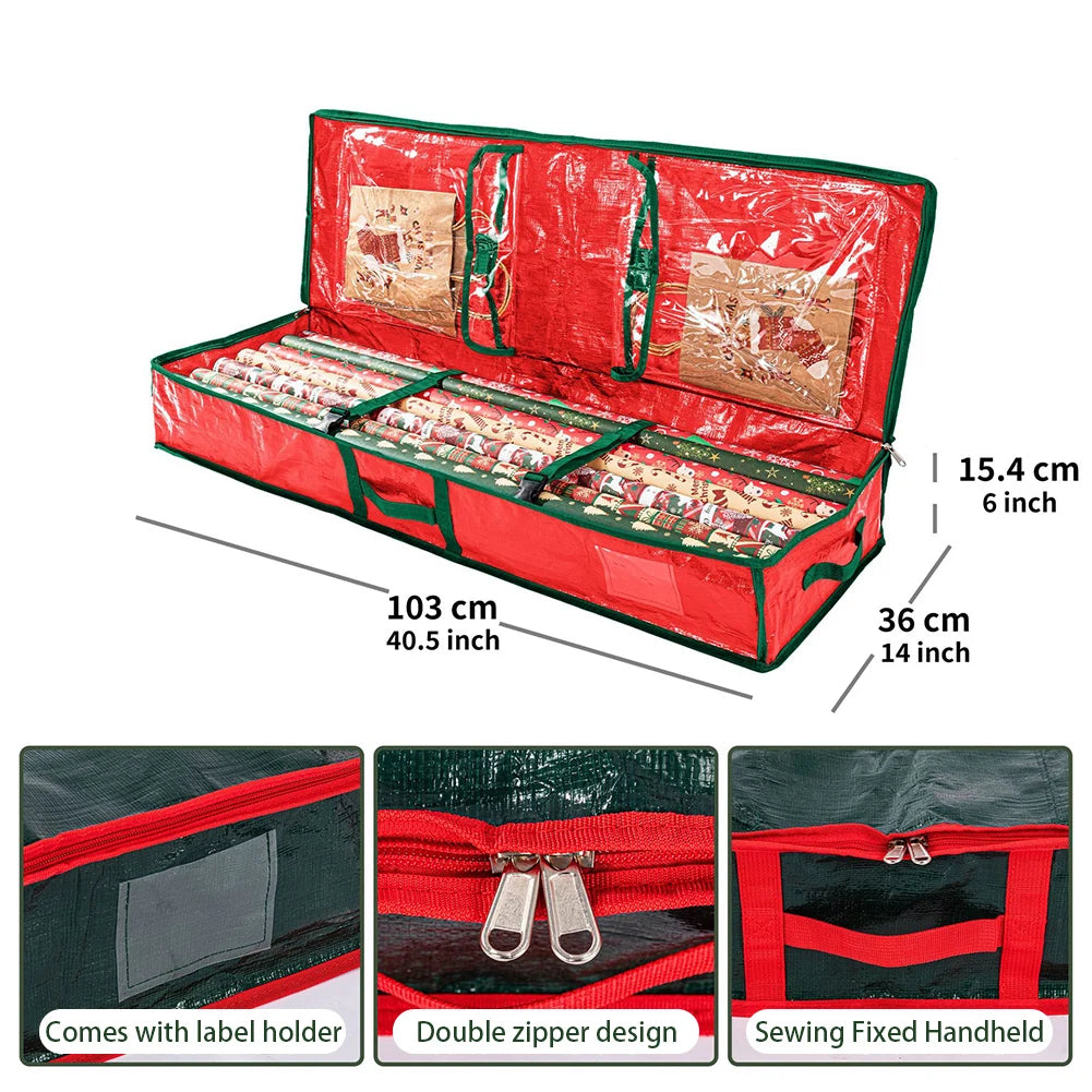 Generous Storage Capacity: Organize all your wrapping paper, ribbons, bows, scissors, and other holiday essentials in one spacious Christmas wrap organizer.