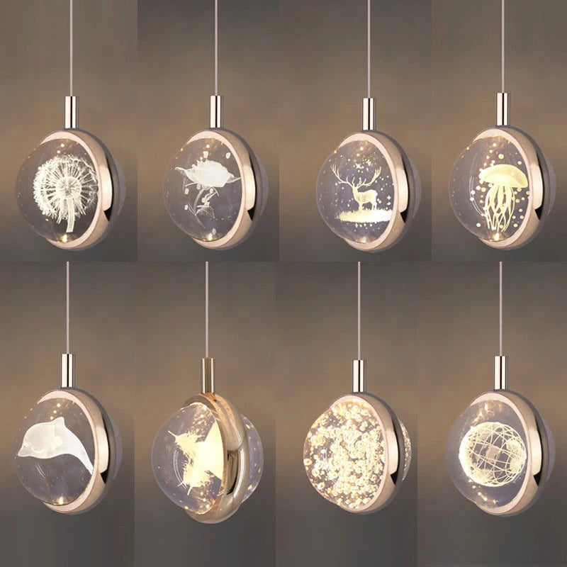 This crystal ball pendant light adds a modern touch to any room. Its glass ball hanging lamp creates a soft glow that enhances your space. Designed for bedrooms, living rooms, and dining areas, this three-dimensional crystal light provides warm lighting while saving energy. Perfect for children’s rooms, entryways, and hallways, it offers a stylish and functional lighting solution.
