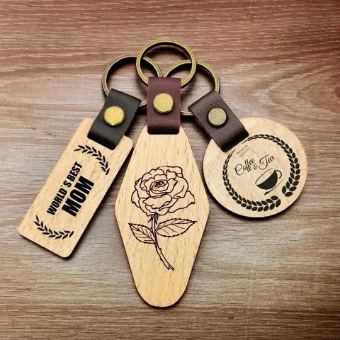 These wood keychains come in versatile shapes like circles, hearts, and squares, and can be engraved with laser precision to showcase names, words, or small designs. If you prefer a hands-on touch, choose a blank version for your DIY customization. Made with quality wood and PU leather, these wood keychains are sturdy and designed to last, offering a simple, functional way to keep your keys stylishly organized.