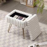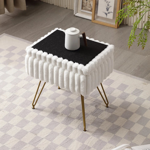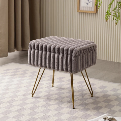 Transform your vanity setup with this makeup vanity stool. The soft faux fur surface offers exceptional comfort, making it a perfect seat for makeup application or relaxation. Hidden storage inside keeps small items like makeup, brushes, or books close at hand. The sturdy metal legs ensure durability, holding up to 260 lbs. Its compact dimensions make it ideal for small spaces, fitting seamlessly into your bedroom, dressing room, or living room.