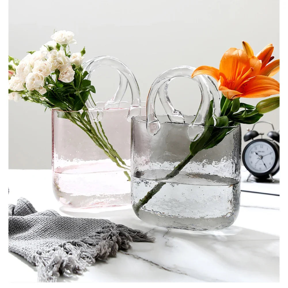 Stable Flat Base and Handles: Designed with a thickened, polished flat base and sturdy handles, this glass vase handbag offers reliable stability and easy handling for versatile placement.