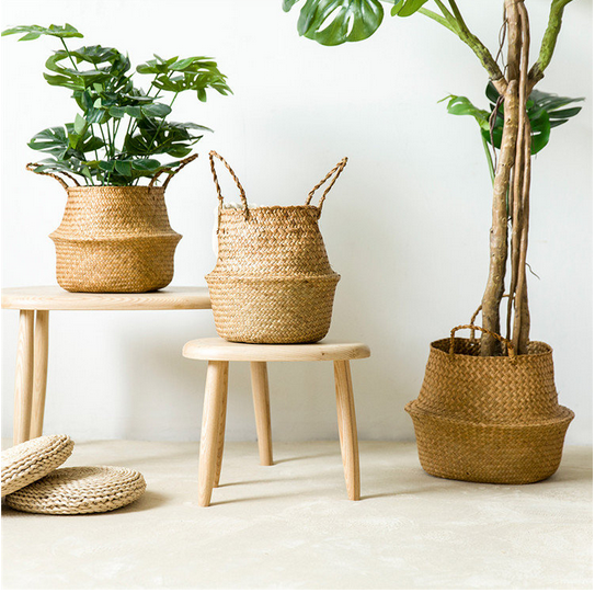 Natural Woven Seagrass Tote Belly Basket for Storage, Laundry, Picnic, Plant Pot Cover, and Beach Bag (Seagrass Natural, Small, Medium and Large)