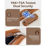 Secure YKK Zippers and TSA-Approved Lock: Equipped with YKK explosion-proof zippers, tested for over 3,000 pulls. The pry-resistant teeth block sharp objects from puncturing your bag. A built-in TSA lock allows inspections without damage during international travel.