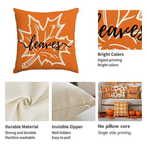 Standard Size: Each cover measures 18” x 18”, ideal for most throw pillows. Perfect for autumn gatherings, Thanksgiving celebrations, or simply enjoying a crisp fall evening indoors, these pillow covers combine rustic charm with lasting quality.