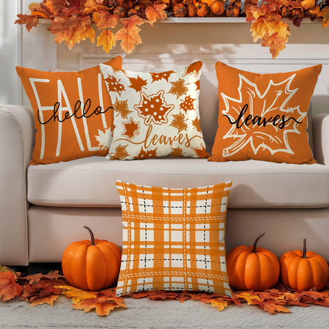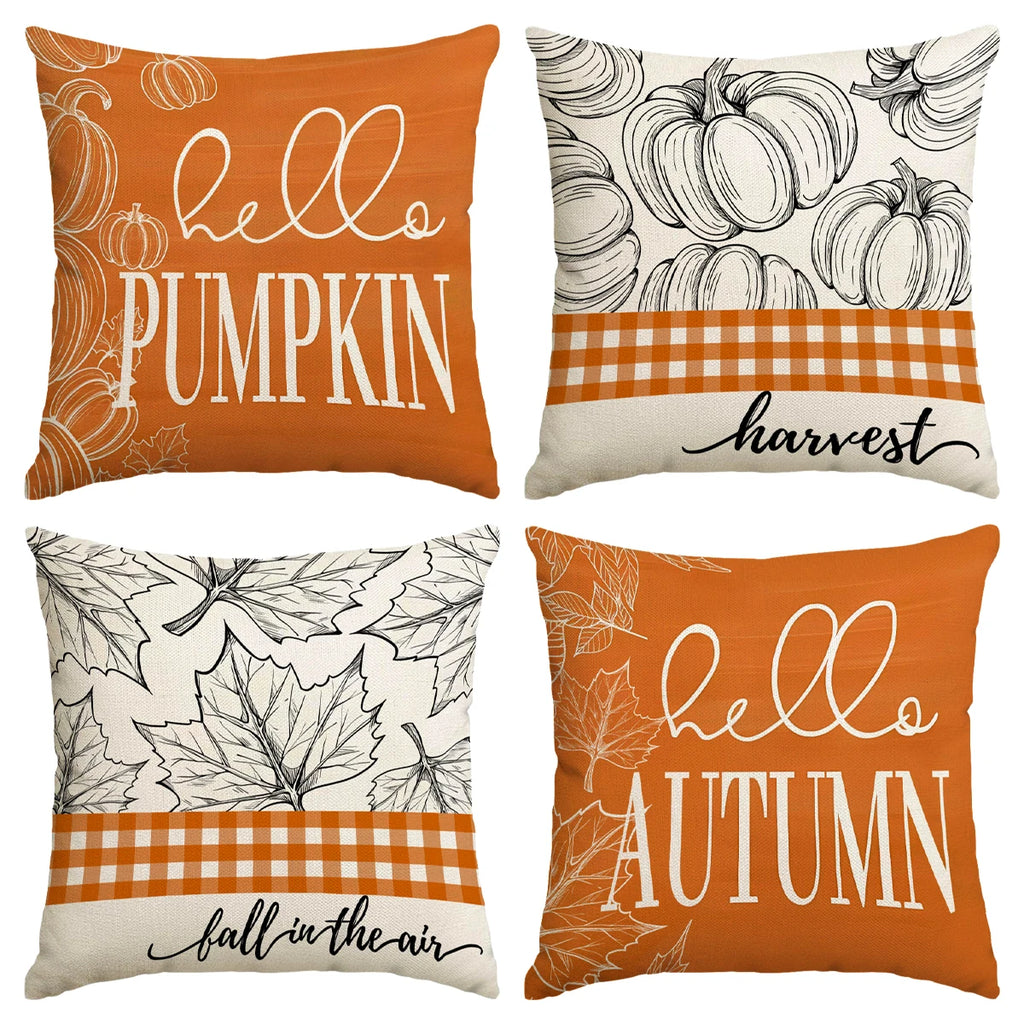 Transform your home into a warm, inviting autumn retreat with this 4-piece Autumn Harvest Pillow Cover Set. These stylish, farmhouse-inspired covers bring cozy fall vibes to any space, from your living room sofa to your porch swing. No need for a complete décor overhaul, just slip these covers onto your existing pillows and instantly upgrade your seasonal style.