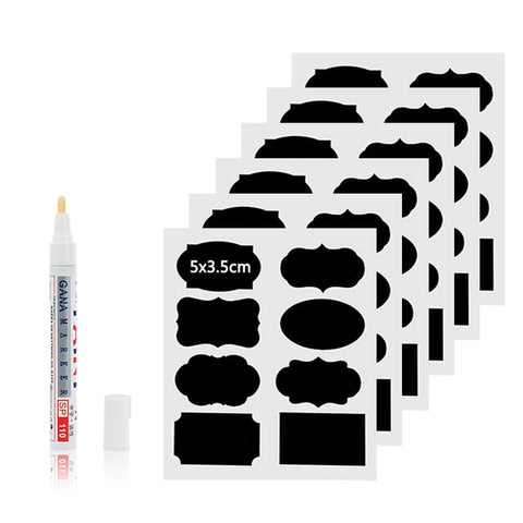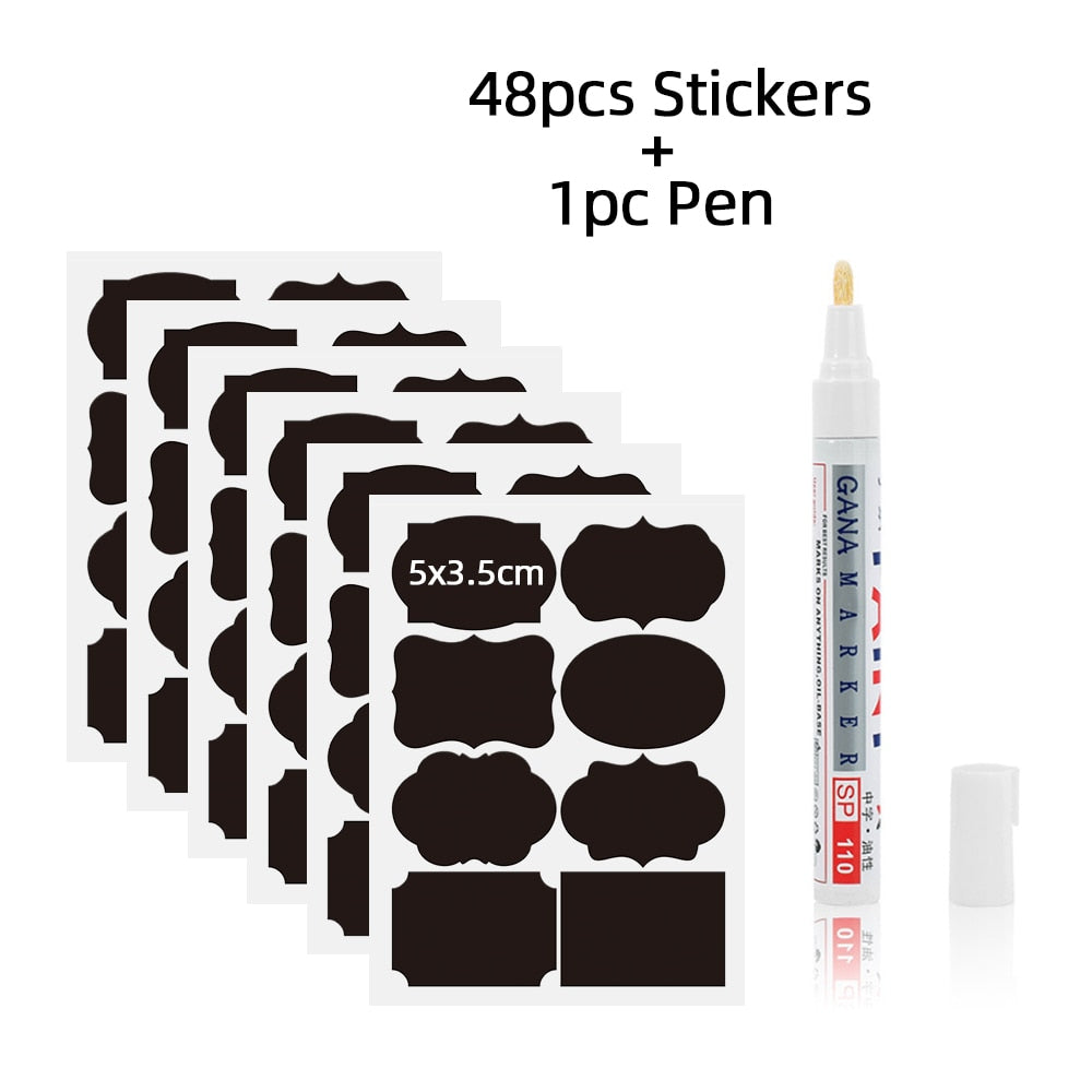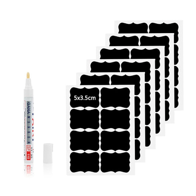 Introducing the new creative way to organize your house...Just peel & stick! 👍 Our new Self-Adhesive Reusable Chalkboard Sticker Labels are perfect for labeling storage bins, boxes, cans, spice jars, glasses and storage containers and anything with a smooth finish. Perfect for organizing kitchen, cupboards, pantries and craft rooms. this package includes fancy stickers so you'll have enough stickers to label all of your items and a pen.