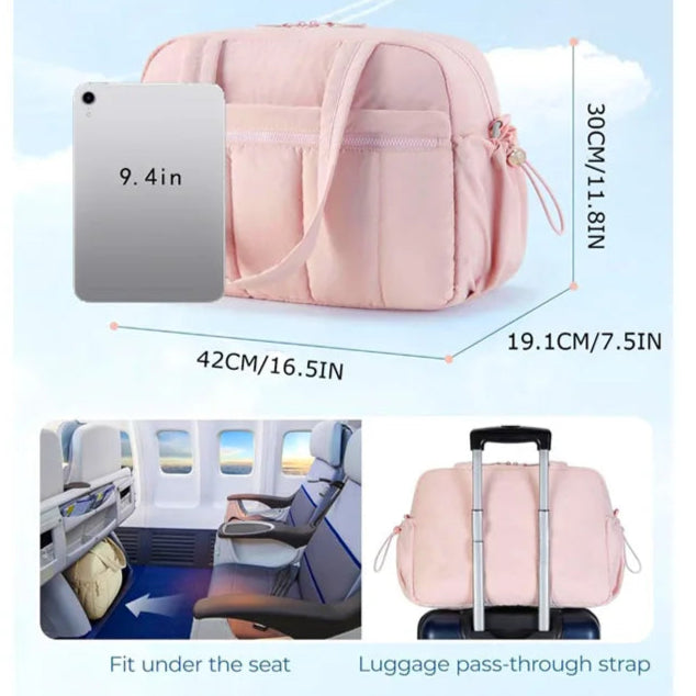 TSA-Free Carry-On Size: Fits perfectly under airplane seats and complies with TSA carry-on guidelines. The easy-access front zip pocket lets you reach travel documents, snacks, or chargers without digging. Perfect for efficient boarding and quick in-flight access.