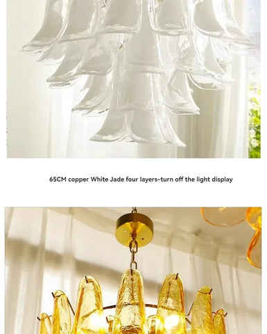Premium Crystal Design_ The crystal chandelier features high-quality glass crystals that reflect light beautifully.