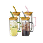 The glass cup with straw features a tight-sealing lid to prevent spills. Perfect for home and café drinkware.