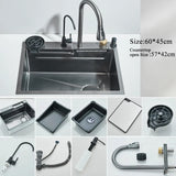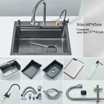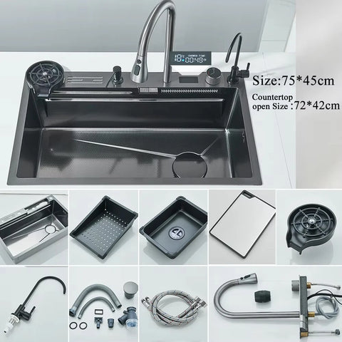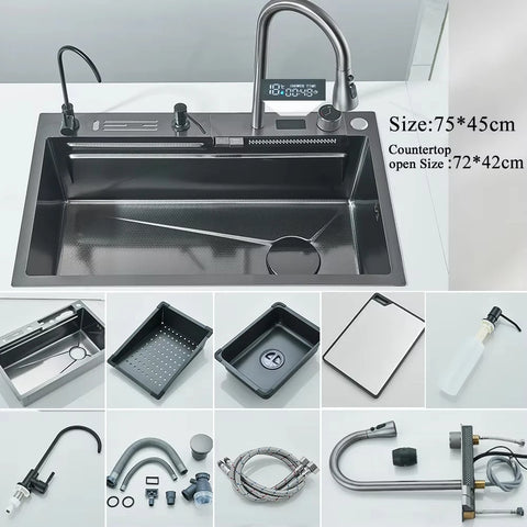 Multi-Function Sink with Faucet – This fully equipped stainless steel sink set includes a high-performance faucet with a digital temperature display, adding modern convenience, efficiency, and precise water control to your daily kitchen tasks.