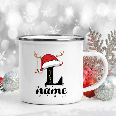 Festive Christmas Hat Design: Each Christmas custom mug features a unique Christmas hat adorned letter and a custom name, adding a joyful and personalized touch to your holiday season.
