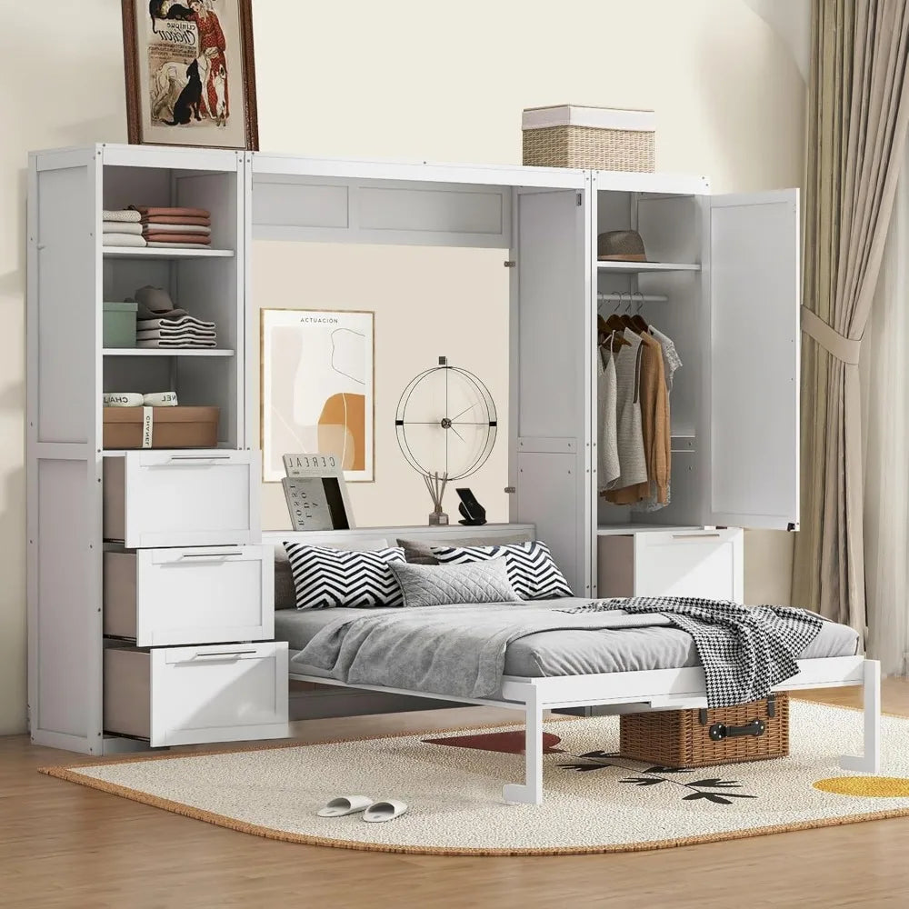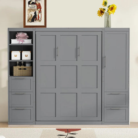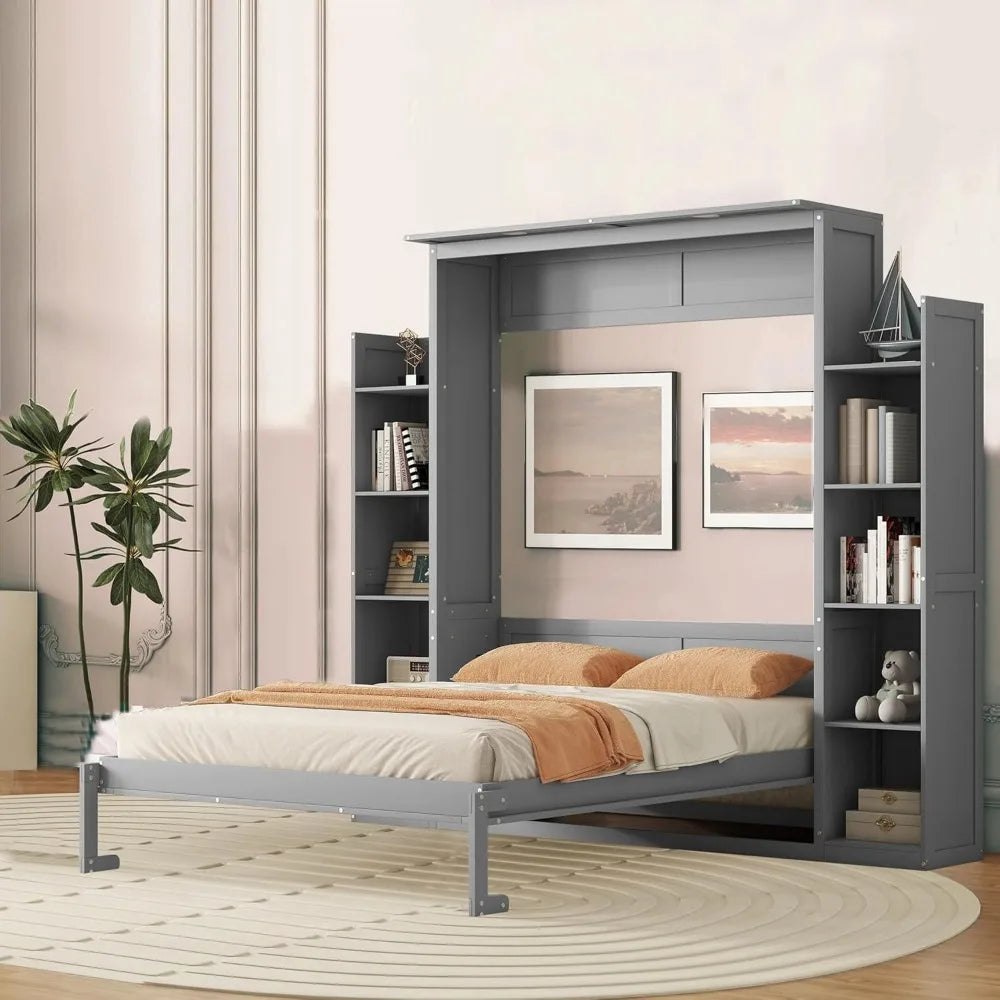 Space-Saving Queen Murphy Bed with Storage and Shelves