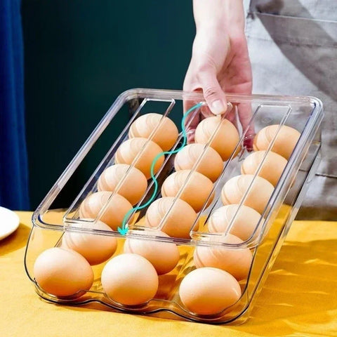 Keep your refrigerator clean and organized with the Refrigerator Egg Storage Box. This egg holder stores eggs securely while saving space. The auto-rolling feature makes eggs easy to grab without opening the lid. Made from clear food-grade PET plastic, it's easy to monitor the egg count. Designed for daily use in busy kitchens, this egg organizer fits smoothly into standard fridge layouts.