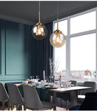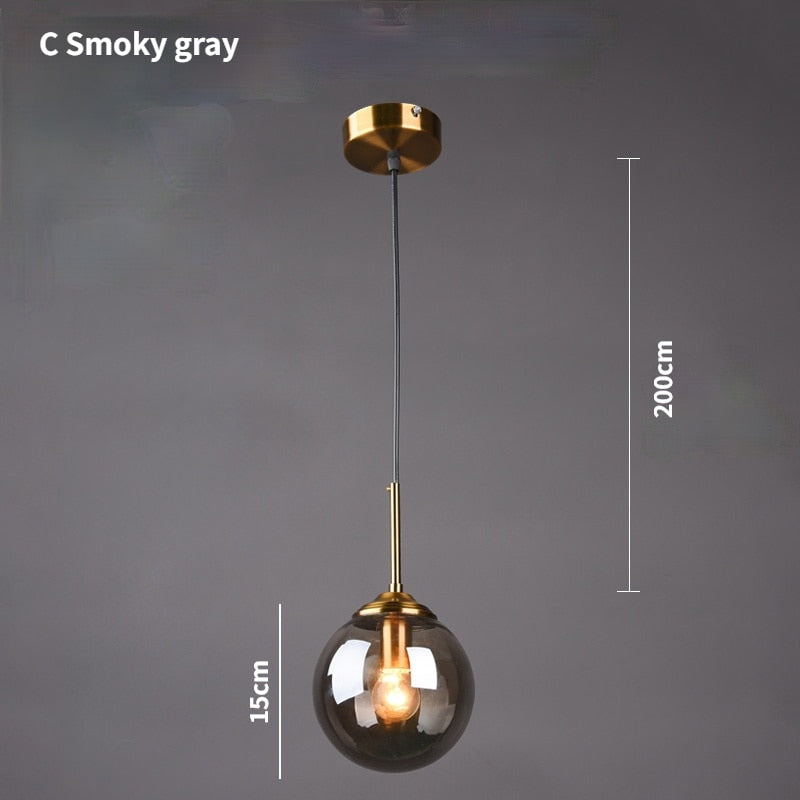 Round glass smoky pendant light gives the interior an extravagant touch and harmoniously underlines an atmospheric ambience.