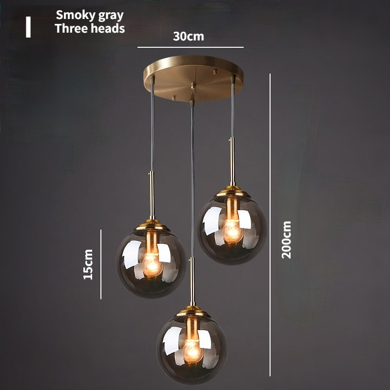 Each of the three lampshades is almost spherical in shape and is made of glass, producing a very stylish look that can be combined with modern interiors.