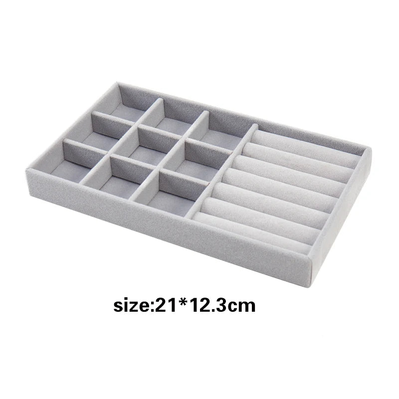 Organize your accessories with the Stackable Velvet Jewelry Display. This compact system works well in drawers, dressers, and shelves. Designed to sort rings, earrings, necklaces, and bracelets, it supports fast organization without mess. Use it in bedrooms, makeup stations, or shops. The slim build fits tight spaces while maintaining structure and visual order.