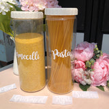 Then send us a message in the "SPECIAL INSTRUCTIONS FOR SELLER" section letting me know what COLOR (black,white,rose gold or gold) you want and WHAT your decals to say.(Flour, Sugar, Brown Sugar, Powdered Sugar, Coffee, Tea,Pasta,Spices etc.)