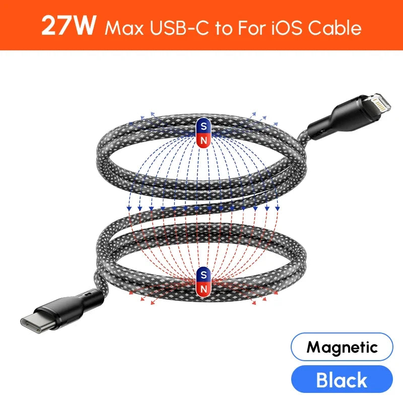 Keep your devices powered up quickly with this Magnetic Type C to iOS Fast Charging Cable, perfect for home, office, or travel.